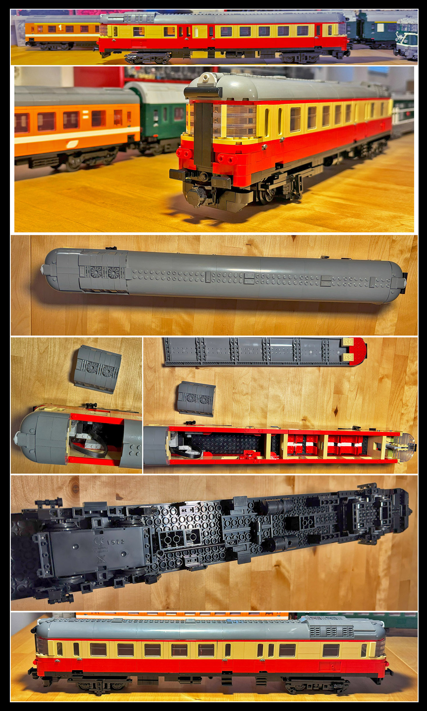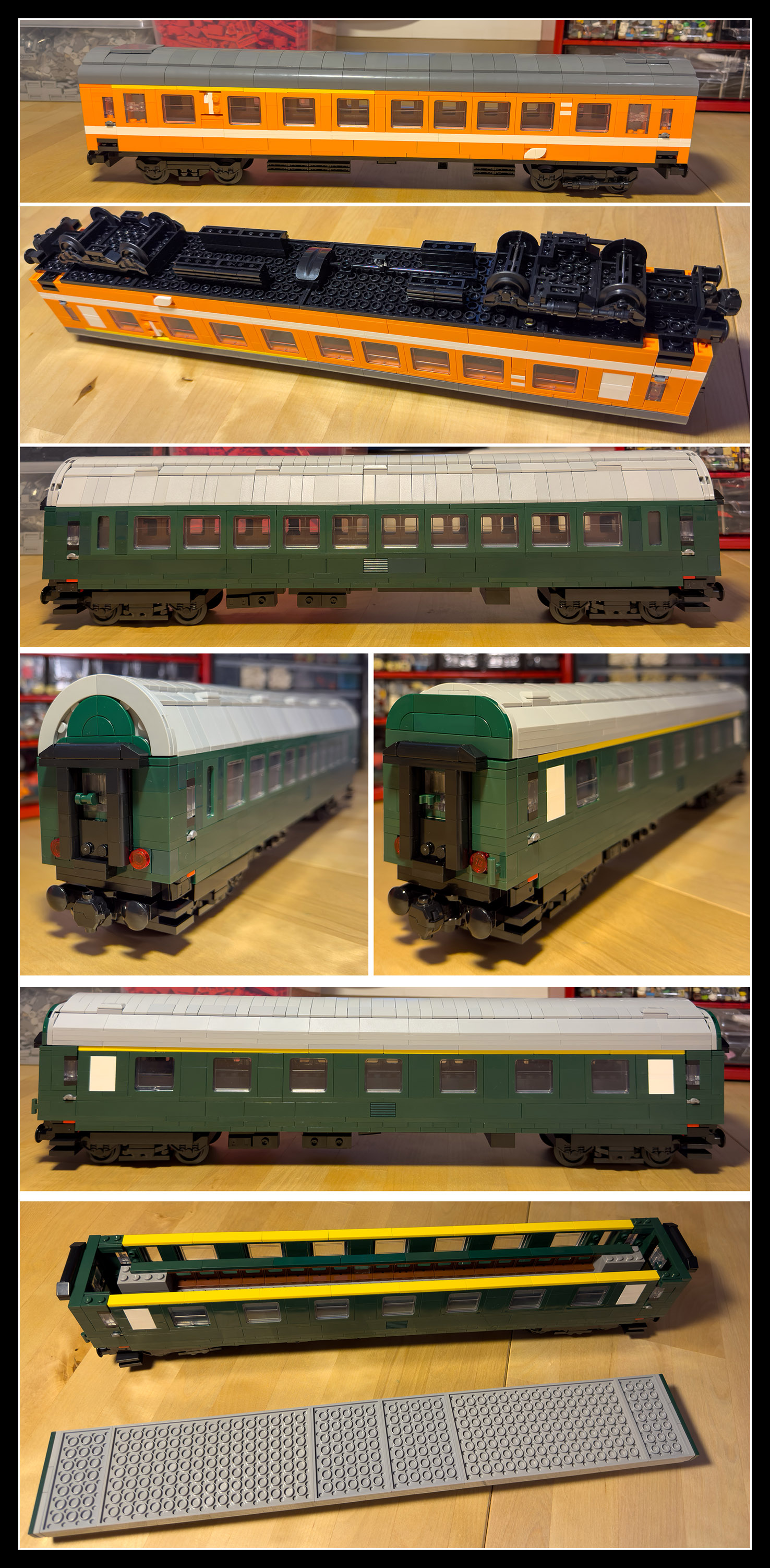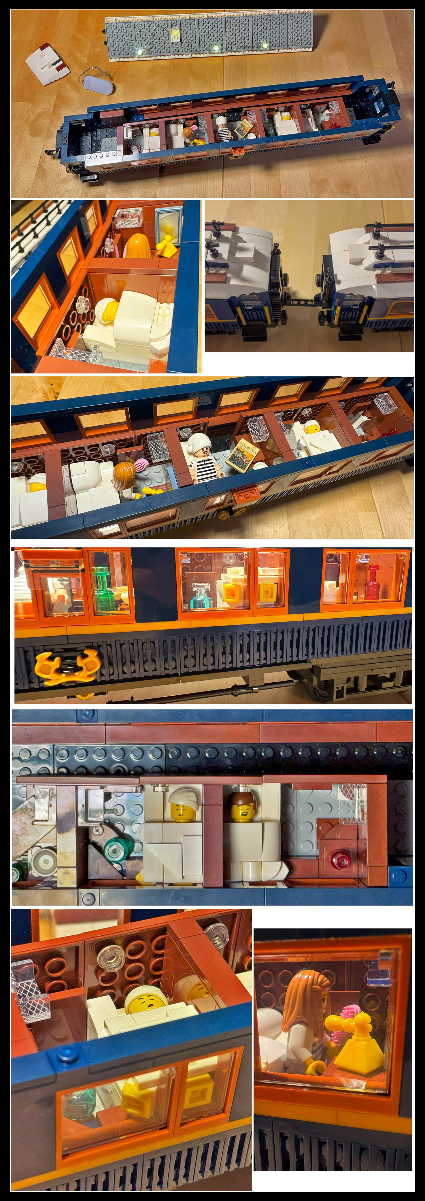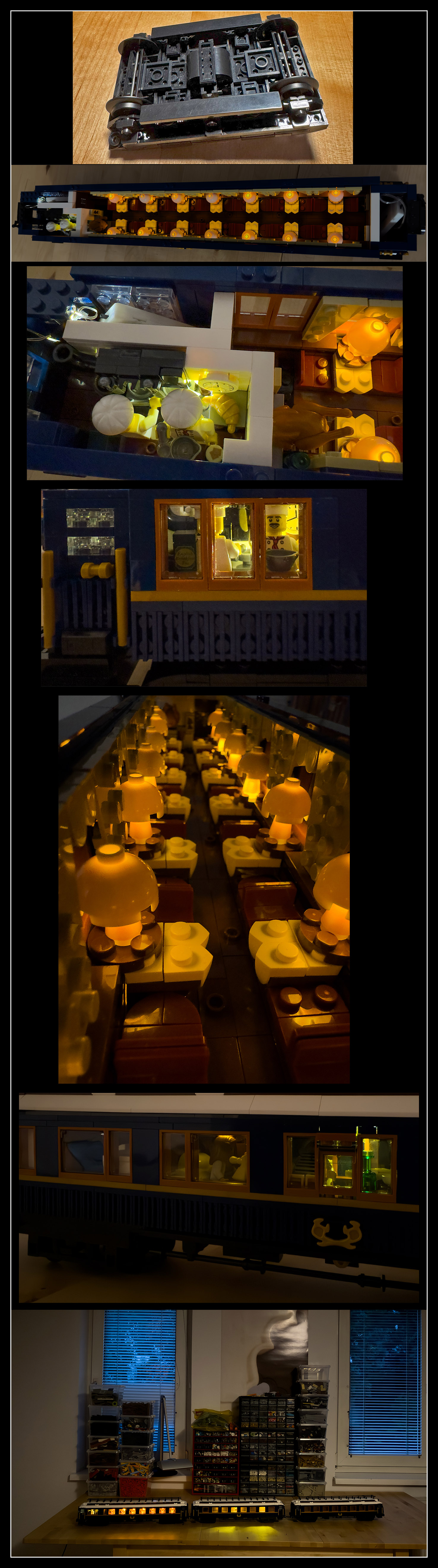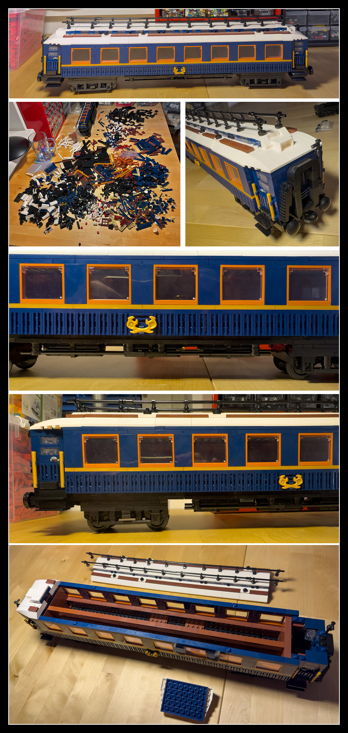Der Waggon ist eher ein MOC - um dem Exzess Einhalt zu gebieten, habe ich die zwei Schlafwagen der Bauart etwas gekürzt. Die Seitenwände und das Dach folgen prinzipiell der Bauanleitung, der Rest nicht.