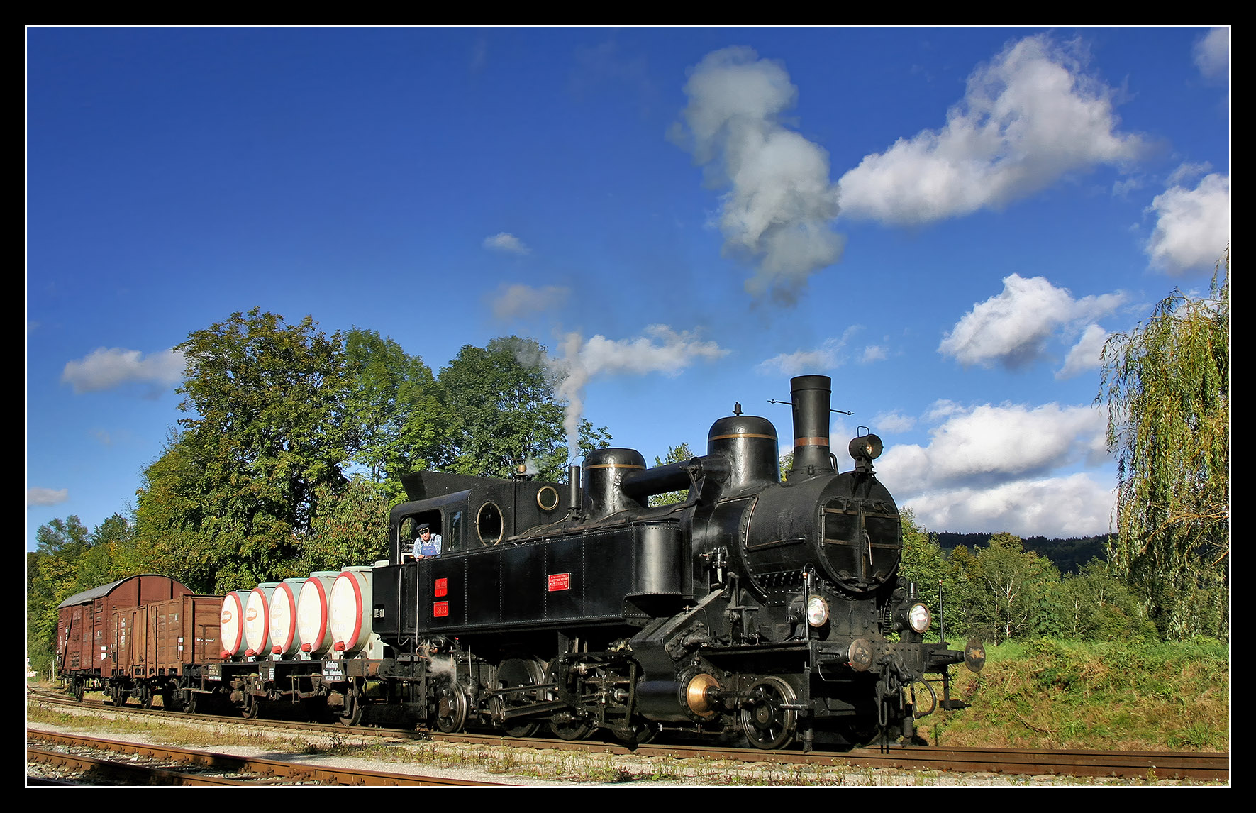 Der Milchwaggon hinter einer 30er (auch im Brick-Bestand :-)) in Tauchen-Schaueregg (mein Foto vom 17. 10. 2004).